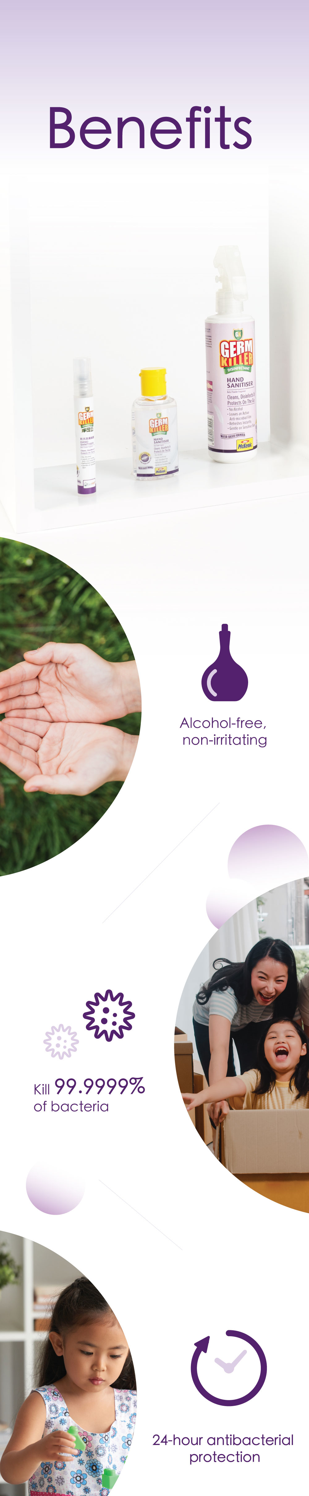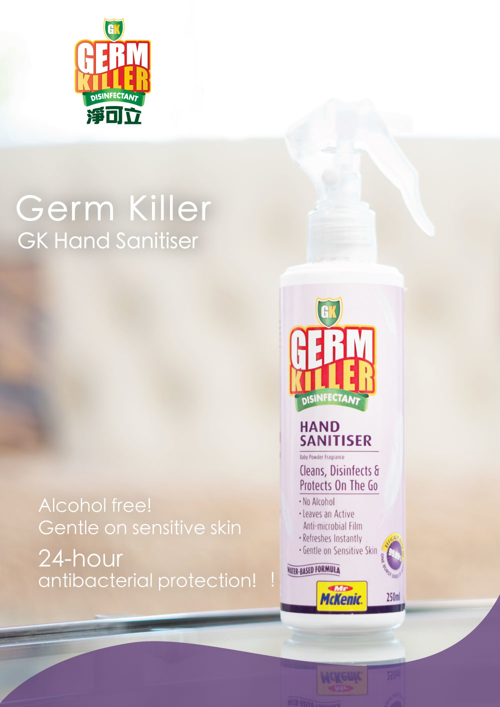 GK Water-based Hand Sanitiser is a premium hand sanitizer that kills 99.99999% of bacteria and provides a quick and convenient way to clean and disinfect your hands without soap and water. Its alcohol-free formulation does not dry out hands nor irritate sensitive skin, making it suitable for daily use. Upon application, it leaving hands clean and lightly scented.