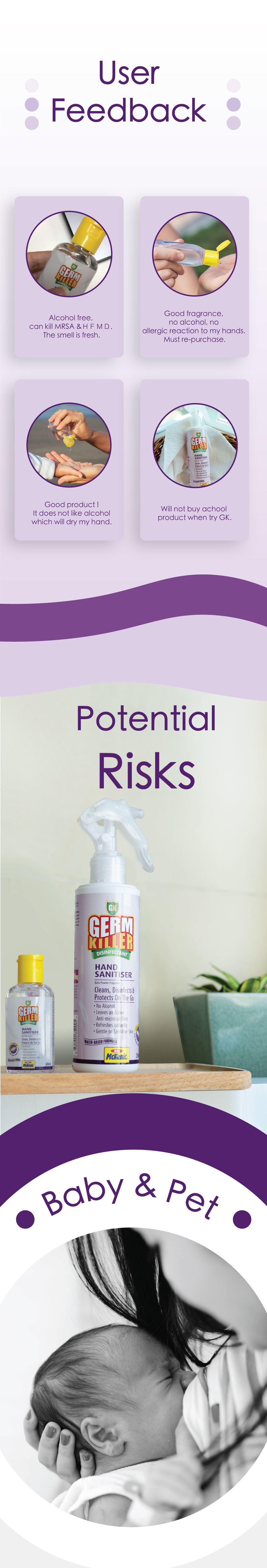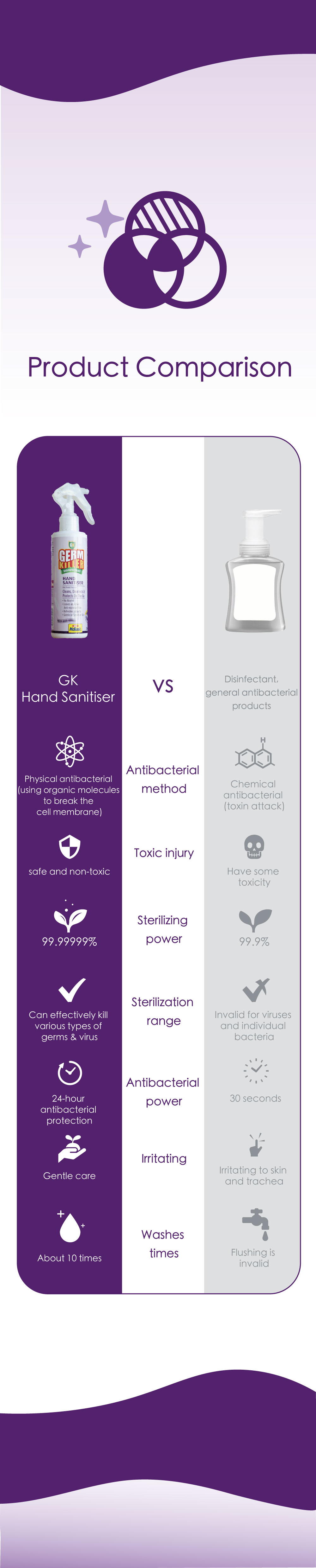 GK Water-based Hand Sanitiser is a premium hand sanitizer that kills 99.99999% of bacteria and provides a quick and convenient way to clean and disinfect your hands without soap and water. Its alcohol-free formulation does not dry out hands nor irritate sensitive skin, making it suitable for daily use. Upon application, it leaving hands clean and lightly scented.