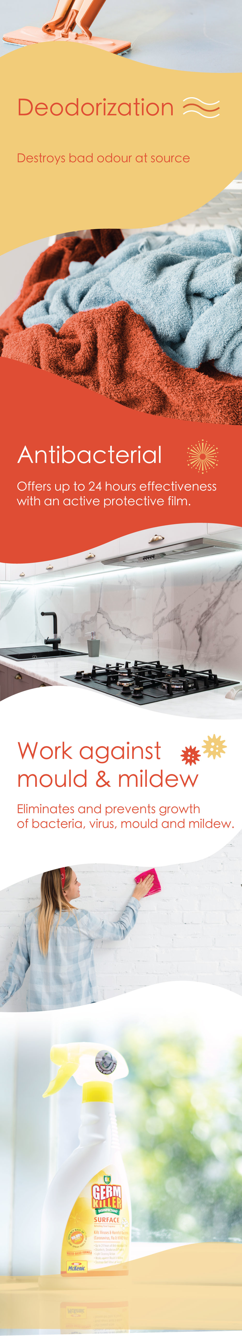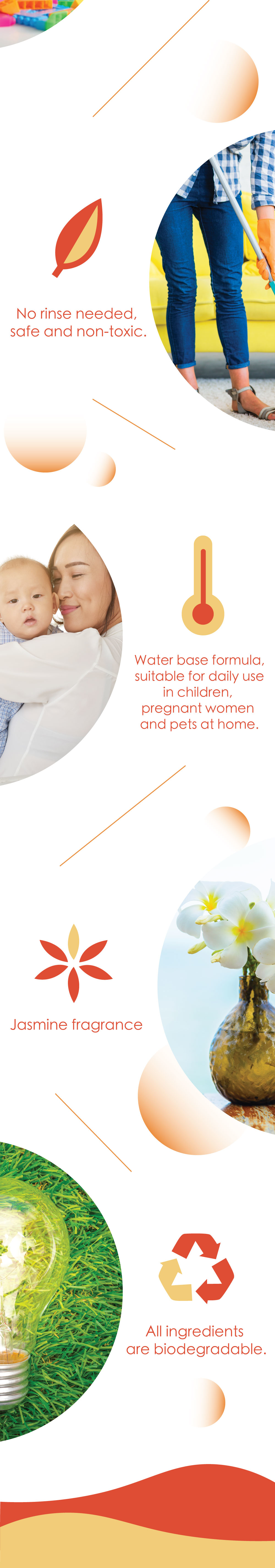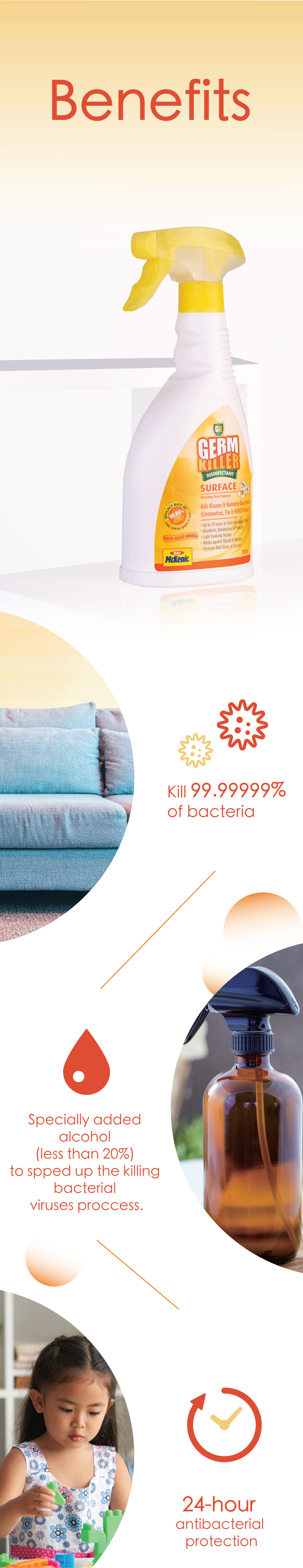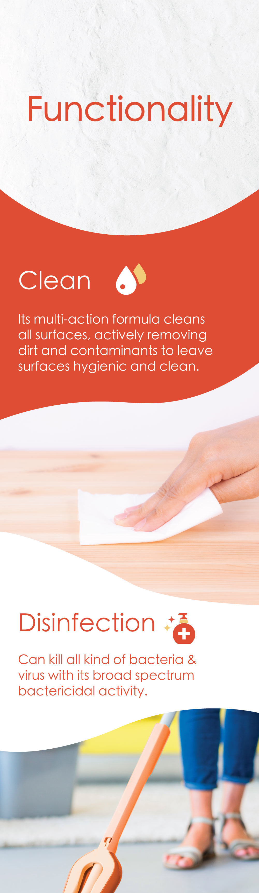 GK Surface is a premium water-based disinfectant with broad spectrum bactericidal and virucidal action that kills 99.9999% of germs. This mult-action formula cleans and disinfects all surfaces and can be used on fabrics. It contains no harsh chemicals and is non-irritating to the skin