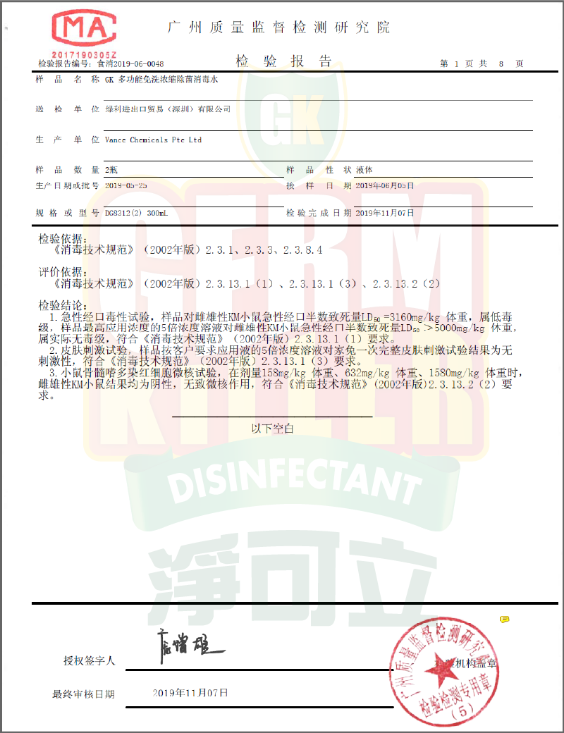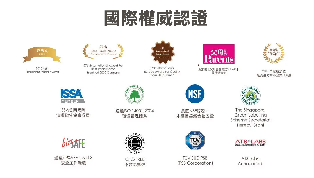 有效殺滅金黃色葡萄球菌、綠膿桿菌、大腸桿菌、白色念珠菌、腸道沙門氏菌