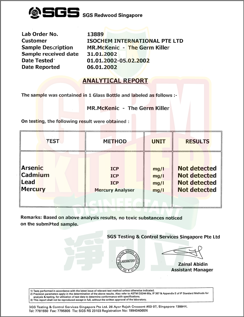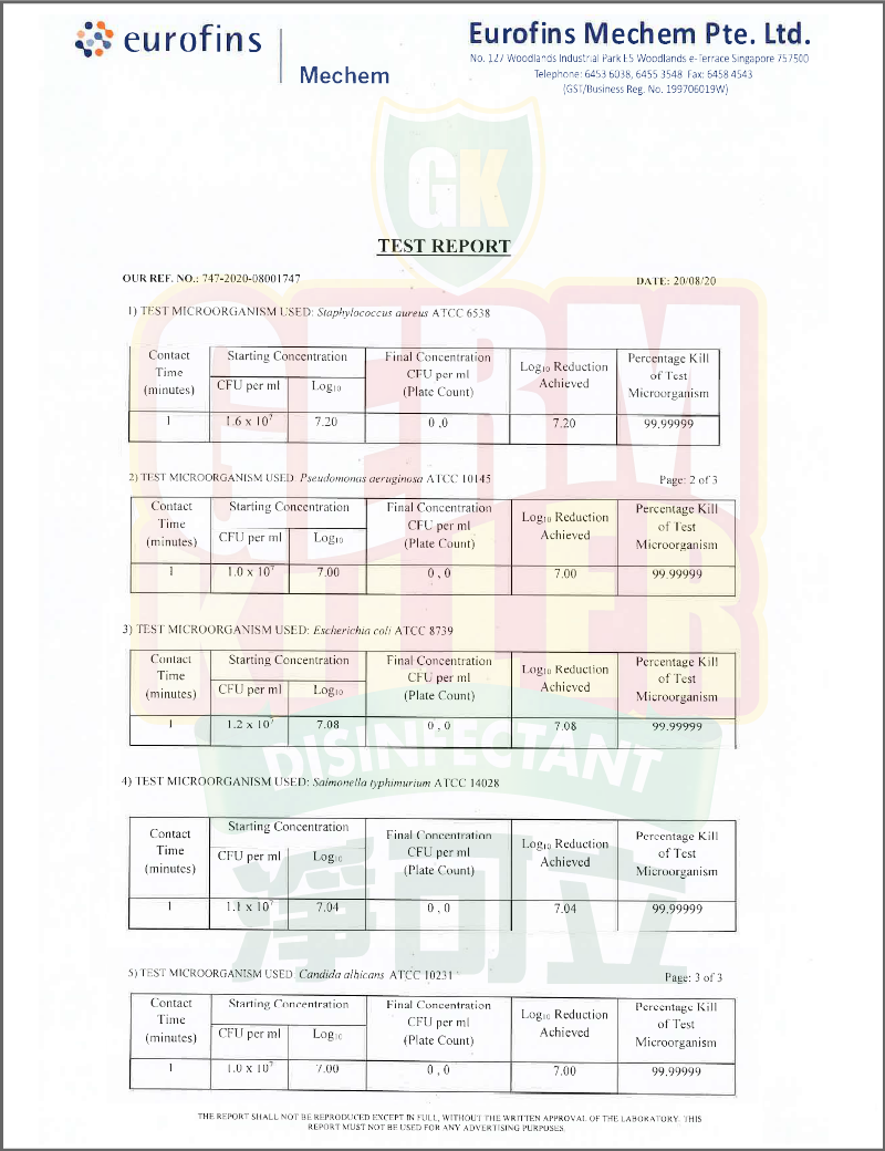 99.99999% | Eurofins Mechem Pte. Ltd. |