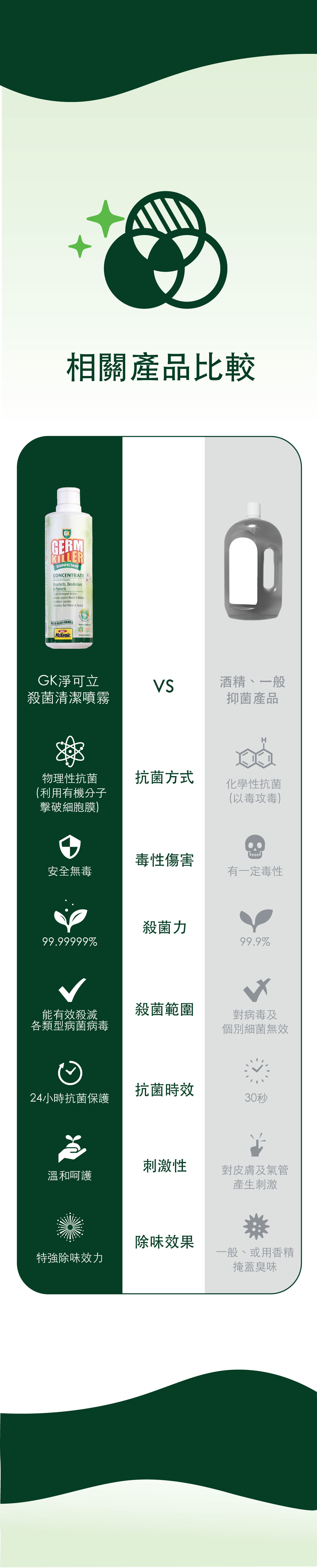 適用於拖地、洗衣、浸玩具的 GK淨可立 殺菌濃縮液是一種用途廣泛的優質水溶性消毒藥水,有效殺死99.9999%的細菌和病毒。使用時並會散發著清新茉莉花香,不用過水,抗菌長達24小時,無需每2小時消毒一次,無殘留,不傷皮膚,可應用於織物上(絕不損衣物纖維)。所有成分可自然分解,安全無毒,適合家裡有嬰兒、孕婦、寵物每天使用,十多年來深受歐美各個家庭信賴和愛戴。