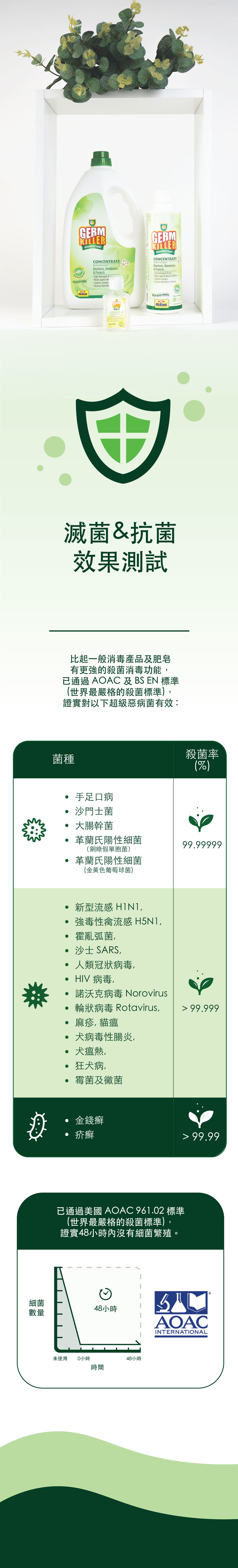 適用於拖地、洗衣、浸玩具的 GK淨可立 殺菌濃縮液是一種用途廣泛的優質水溶性消毒藥水,有效殺死99.9999%的細菌和病毒。使用時並會散發著清新茉莉花香,不用過水,抗菌長達24小時,無需每2小時消毒一次,無殘留,不傷皮膚,可應用於織物上(絕不損衣物纖維)。所有成分可自然分解,安全無毒,適合家裡有嬰兒、孕婦、寵物每天使用,十多年來深受歐美各個家庭信賴和愛戴。